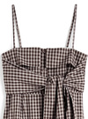 細かいチェック柄がシックで大人っぽい印象のキャミワンピース。フロントにあしらったシャツ巻き風のデザインがユニークなアクセント。