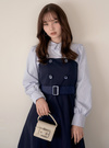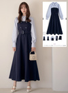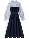 ベルト付きストライプ柄シャツドッキングワンピース[tg938]