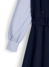 ストライプ柄シャツをドッキングした爽やかな雰囲気のワンピース。