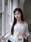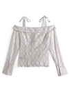 ストレッチの効いたフラワーレース生地で仕立てた、程よいシアー感のトップス。大胆なオフショルダーにリボンのストラップがフェミニンな雰囲気。