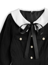 サテンリボンがポイントのつけ襟がセットになっており、つけるだけでキュートな雰囲気にアレンジできる。