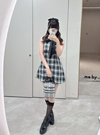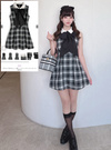 ボウタイ付きチェック柄ノースリーブミニワンピースの商品詳細情報のページです。