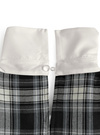 クラシカルなチェック柄生地で仕立てることで、甘すぎない仕上がりに。