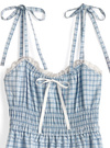 チェック柄ショルダーリボンシャーリングキャミソールワンピース[tg964]