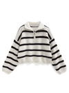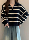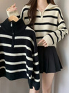 ボーダー柄ハーフジップニットトップスの商品詳細情報のページです。