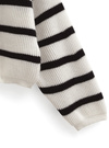 ボーダー柄で親しみやすさのあるニットトップス。やや起毛がかった風合いで肌触りが良く、程よい厚みがあるためこれ一枚だけでも存在感を放つ。