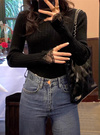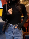 柔らかな素材感で快適な着心地を実現するニットトップス。ハイネックとフィット感のあるリブ編みが、上品で女性らしいシルエットを演出。