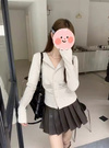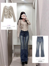 コンパクト丈ながらすっきりとしたタイトなシルエットなので、ワイドボトムスとも好相性。