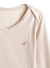 肌馴染みの良いカットソー素材で仕立てた長袖トップス。シンプルながらも、ラグラン風のショルダーデザインやさり気ないロゴ刺繍がアクセント。