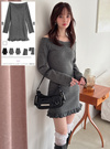 ウールタッチの風合いが特徴の、大人レディなニットソーワンピース。ややVネックのオフショルディテールが、デコルテ周りを美しく引き立てる。