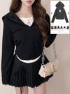 フード付きレイヤード風ハーフジップトップスの商品詳細情報のページです。