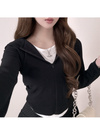 インナーとパーカーを組み合わせたような重ね着風デザインのトップス。さらっとした風合いのカットソー素材なので、ロングシーズン快適に着られる。