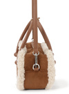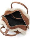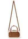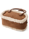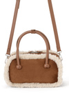 スエード調生地にモコモコのボアをあしらった、ムートン風のミニバッグ。コンパクトなスクエアフォルムで、持ち歩きに便利なサイズ感。