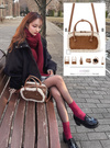 ショルダーベルト付きのため、肩掛けスタイルにするのもかわいい。