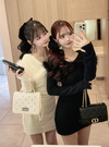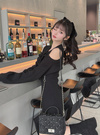 キルティングにビジューを散りばめた、エレガントな雰囲気漂うバッグ。ひねり金具部分にもキラキラのラインストーンを敷き詰め、高見えするデザインに仕上げた。