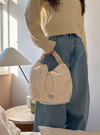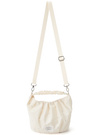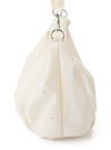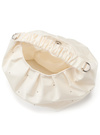 タックを入れて女性らしさ溢れる丸みフォルムに仕上げたミニバッグ。くしゅくしゅっとさせたハンドルデザインや、全体に散りばめた細かいスタッズで華やかさをプラス。