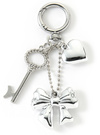 ぷっくりとしたハートやリボン、鍵モチーフのキュートなキーチャーム。ツヤッとしたシルバーがスタイリッシュで洗練された印象に。
