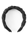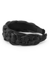 存在感のあるふっくらとした編み込みデザインが目を惹くカチューシャ。フェイクレザー素材を使うことで、モードな雰囲気に仕上げた。