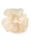 ハリのあるオーガンジー素材を2枚重ねたボリュームのあるシュシュ。上品な光沢感が魅力で、つけるだけで華やかなヘアスタイルに。