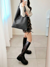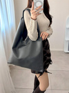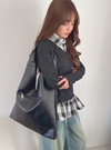 くたっと感のあるシルエットが特徴の、こなれた雰囲気漂うフェイクレザーバッグ。トライアングルのフォルムは、持つだけでセンスのあるコーデにアップデートしてくれる。