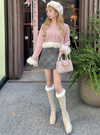 ぷっくりとしたハート型のキルティングデザインがとびきりガーリーなバッグ。ビジューやパールの豪華な2連チャーム付きで、動く度にキラキラ輝き華やかな印象に。