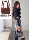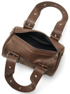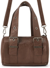 ヴィンテージ感漂うフェイクレザー素材を使用したボストン型バッグ。ベルトモチーフのワイドなハンドルデザインがこだわりポイント。