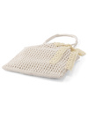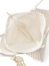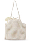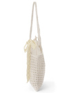 ナチュラル風合いで清涼感漂うかぎ編みデザインのバッグ。レース生地のリボンを添えることで、さりげない甘さをプラス。