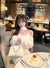 ビジューチャームがセットで付いており、動くたびにキラキラ輝きを放つ。