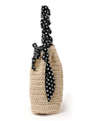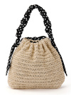ナチュラルなペーパー素材と、ドット柄のギャザーハンドルを組み合わせたバッグ。巾着タイプになっているので、荷物が溢れ出る心配がなく使いやすさも◎。