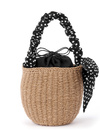 ドット柄の大きめリボンとギャザーを寄せたハンドルで華やかさをプラス。