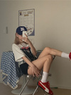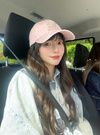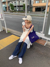 動きのあるユニークなロゴ刺繍が目をひく、ニュアンスたっぷりなデザインのキャップ。広めのツバは紫外線をガードして日焼け対策にも効果的。