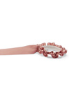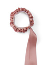 ツヤのある細リボンが揺れて、さりげなくフェミニンなムードを演出する。ゴム部分はヒラヒラとフリルになっていて、華やかさと上品さをプラス。
