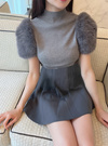 肩周りのファーが存在感を放つ高級感のあるトップス。もちもちとしたニット生地と柔らかな触り心地のファーの異素材のコントラストが特徴的。