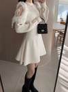 華やかなエコファーでレディムードをグッと高めるミニワンピース。ショルダー部分のみチュール素材を使用し、ほのかな肌見せにキュンとする。