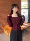 フロントのフェイクボタンがアクセントとなり、カーディガン風のデザインが魅力。
