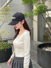 すっきりと開いたスクエアネックがデコルテを美しく際立たせるニットトップス。ウエストラインを強調する太目の裾リブ&ショート丈で、コンパクトなシルエットを演出。