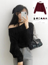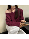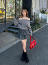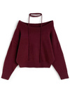 細身のチョーカーが、モダンなアクセントを添えるトップス。肩の開け具合を調整でき、片肩を落とせばワンショルダー風に着こなせる。