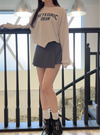 ロゴプリントアシンメトリースウェットトップス[tu1572]