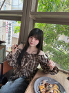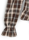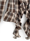 落ち着きのあるモダンなチェック柄にシボ感のある生地が魅力のブラウス。センターの流れるようなラッフルデザインがガーリーなアクセント。