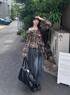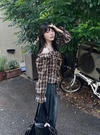 チェック柄オフショルダーラッフルフリルブラウスの商品詳細情報のページです。