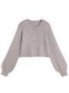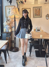 デザインの異なるキラキラのビジューボタンをあしらい、華やかさたっぷりに仕上げた。
