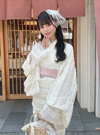 浴衣としても普段はワンピースとしても着られる、羽織り・キャミワンピース・兵児帯がセットになったアイテム。レースやフリルを組み合わせた生地がロマンチック。