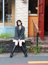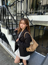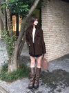 フェイクウール生地を使用した品のある雰囲気のジャケット。ダブルボタンにすることで、クラシカルでこなれた印象をプラス。