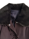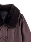 ボリューム感のあるエコファーをドッキングした、上品で華やかなコート。3つ並べたキュートなリボンモチーフが乙女心をくすぐるアクセントに。