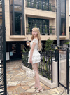 デコルテをきれいに見せる広めのネックラインが女性らしさを引き立てる。