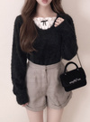 着心地の良い柔らかなシャギーニットも、女性らしさを引き立てる。