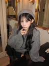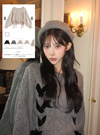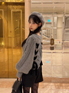 前後2Wayケーブル編みレースアップリボンニットトップス[tu1785]
