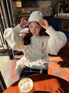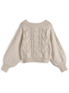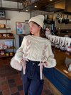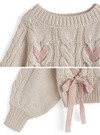 ざっくりと編まれたケーブル編みニットにガーリーなリボンディテールをあしらったトップス。