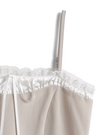 ネックラインを囲む繊細なレースと艶やかなサテン生地が、上品なアクセントに。