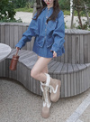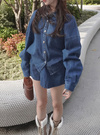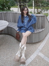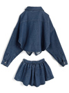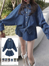 デニムシャツ×ミニスカートセットアップの商品詳細情報のページです。